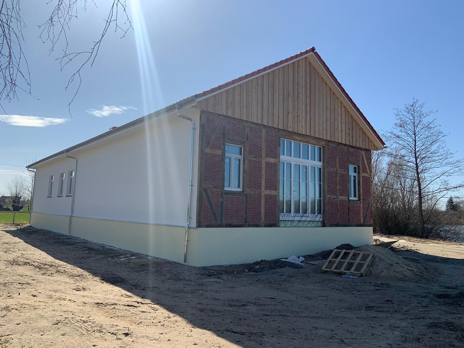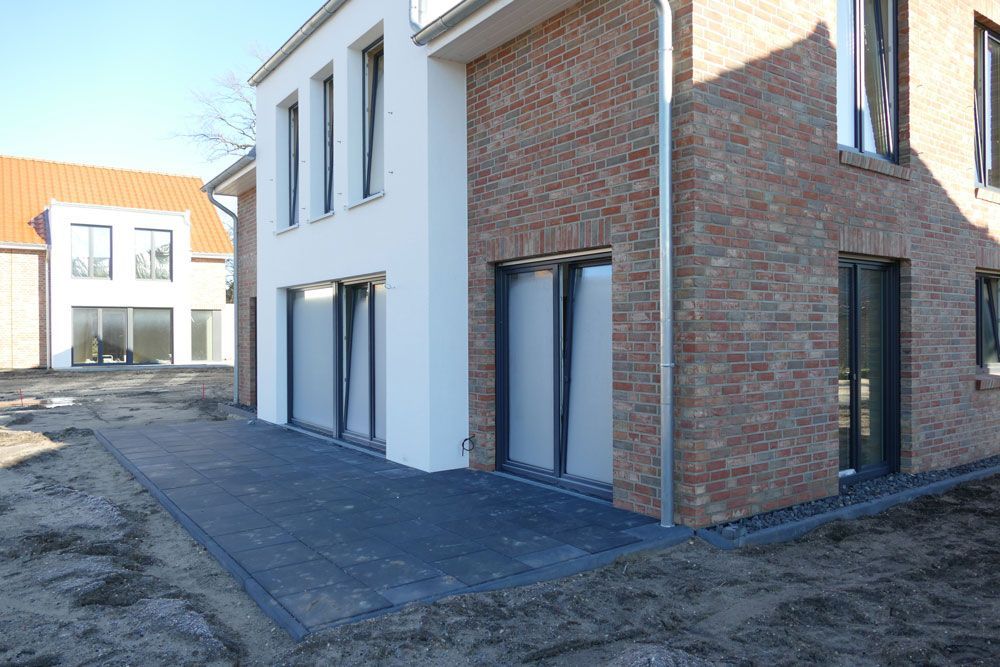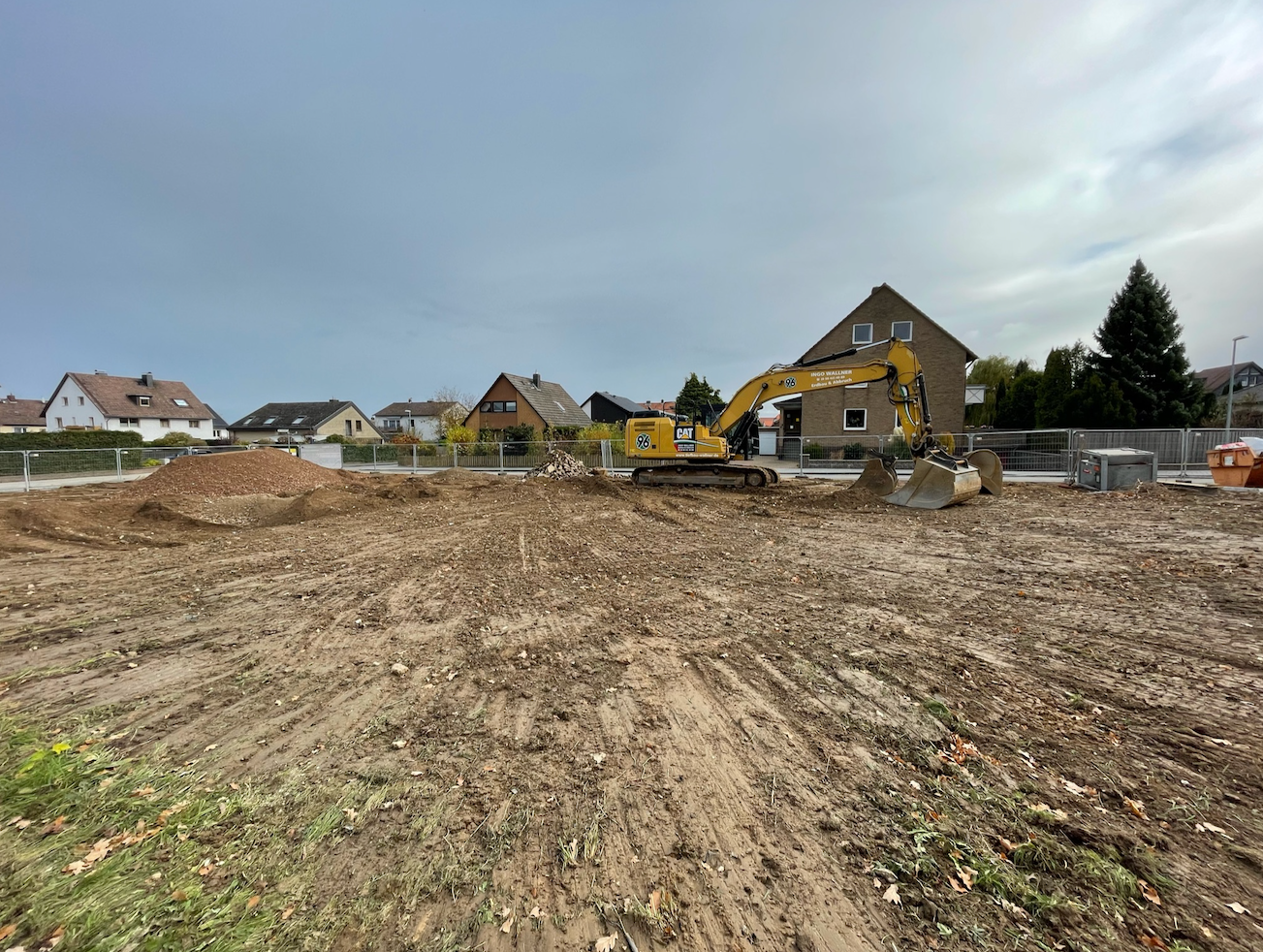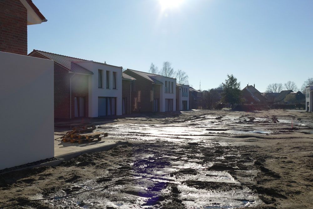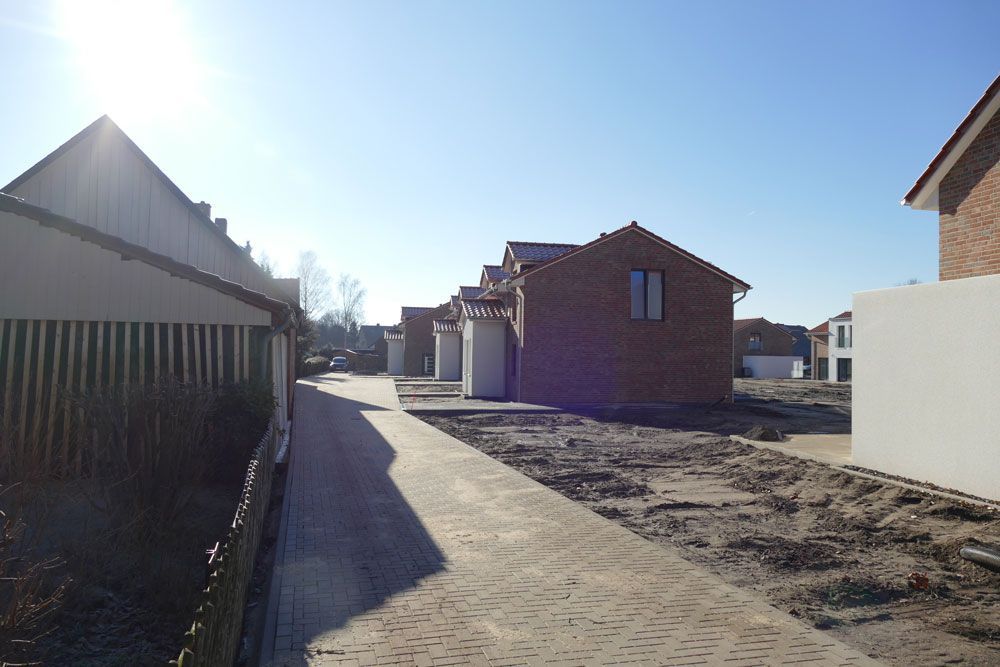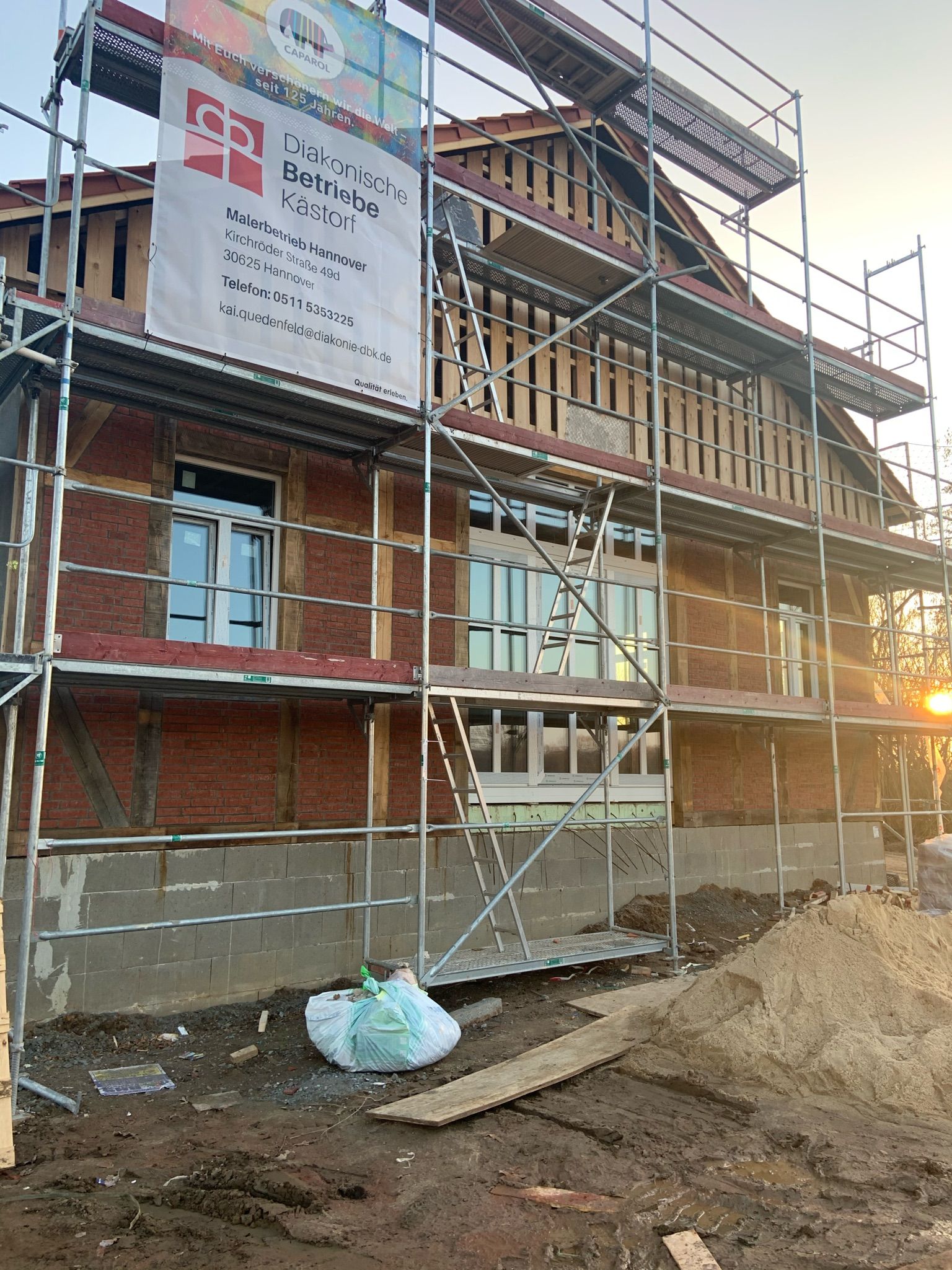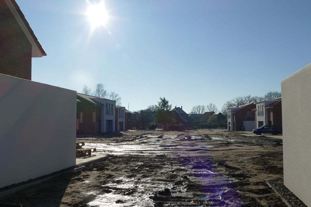 In Scharrel, einem Ortsteil in Neustadt a Rbge, entstehen 7 schlüsselfertige Einfamilienhäuser in Massivbauweise. Durch die Ausbildung eines Harzer Daches erhalten die Häuser eine besondere Ausstattung, die den Dämmstandard erhöht. Große Teile werden mit einem roten Klinker verblendet, während der vorspringende Bereich in WDVS aus hochwertiger Steinwolle gefertigt wird.