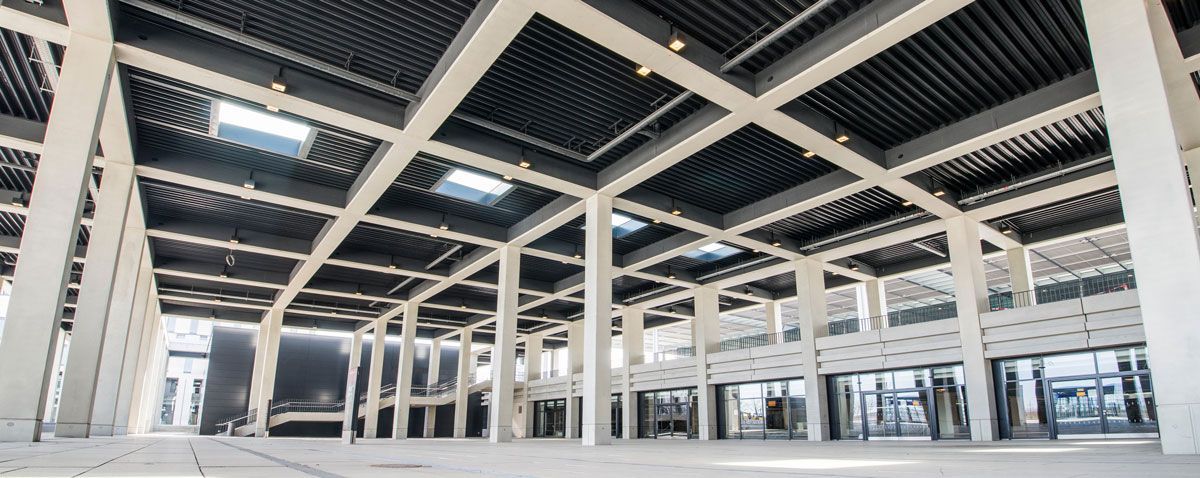 Spannbetondecken sind eine Art von Betondecken, die mit Stahlkabeln vorgespannt sind, um eine höhere Festigkeit und Tragfähigkeit zu erreichen. Diese Technik ermöglicht es, große Spannweiten ohne zusätzliche Stützen zu überbrücken und somit ein freies und offenes Design zu ermöglichen.